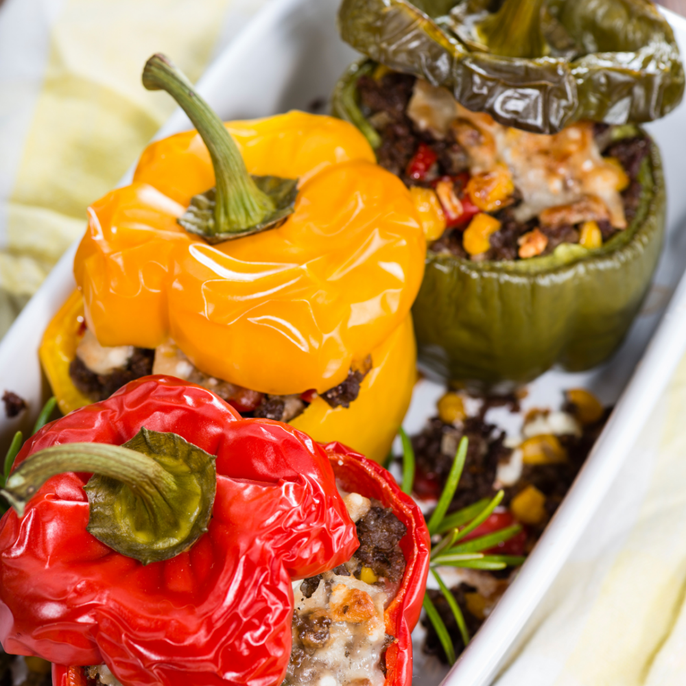 - Füllen der Paprikaschoten: Fülle die vorbereiteten Paprikaschoten großzügig mit der vorbereiteten Füllung.